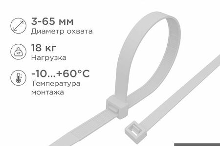 Упаковка комплектуется белыми стяжками размером 250x3,6мм.