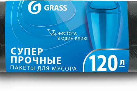 Мешок для мусора ПНД Grass в рулоне 120 л 65x105 17 мкр. черный 15 шт доставка