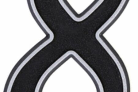 Крупный знак черного цвета с серебристой окантовкой хорошо заметен на поверхности.