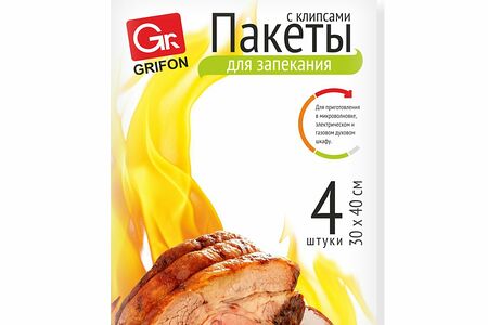 Пакет Grifon для запекания универсальный с клипсами, 30х40 см, 4 шт доставка