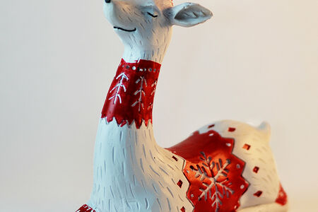Олень декоративный сидящий красно-белый 24 см доставка