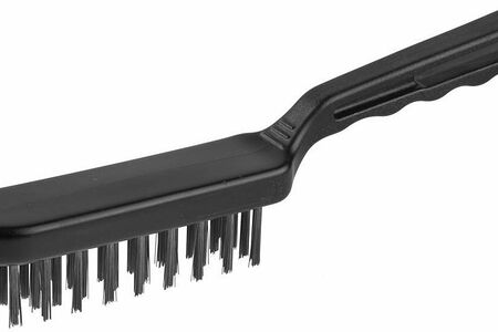Металл, использующийся в щетине, позволяет эффективно удалять ржавчину, любые ЛКМ с металлических, деревянных и других поверхностей- Кол- во рядов: 4 - Материал проволоки: сталь - Материал ручки: пластмасса