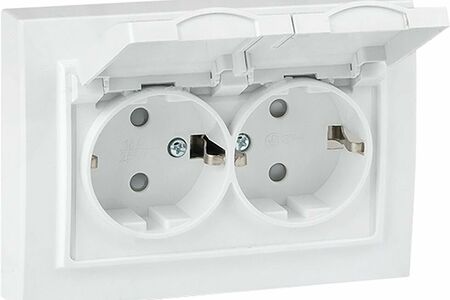 Минск Розетка 2-местная СП с/з с крышкой 16А белая с защ. штор. IP44 EKF