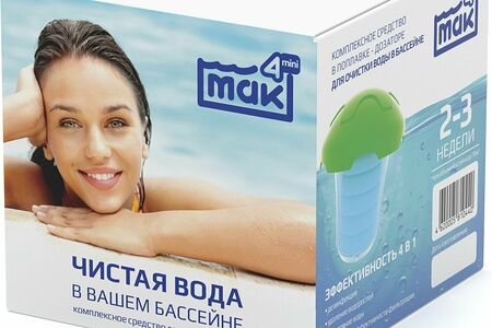 Комплексное средство Mak4mini предназначено для долговременной очистки и дезинфекции воды в небольшом бассейне. Оно находится в удобном для использования и приятном на вид поплавке-дозаторе, а также оказывает сразу четыре действия: удаляет водоросли, дезинфицирует, осветляет воду и повышает эффективность работы фильтров. При использовании в бассейне объемом не более пяти кубометров действия одного дозатора хватает на 2-3 недели.