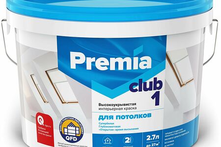 Высокоукрывистая акриловая краска PREMIA CLUB 1 незаменима для окраски потолков и верхних ярусов стен в сухих помещениях. Образует идеально матовое белоснежное покрытие без стыковочных полос и наплывов, что позволит вам воплотить любые дизайнерские решения без особых усилий.