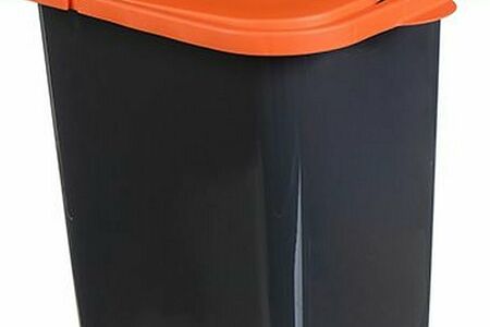Контейнер для мусора используют в качестве функционального дополнения в офисах, на кухнях и в санузлах. Он будет уместен в различных интерьерах. Изделие изготовлено из качественного пластика черного цвета, крышка оранжевая. Она позволяет надежно зафиксировать мусорный пакет и быстро сменить его, а также препятствует проникновению в помещение различных запахов.