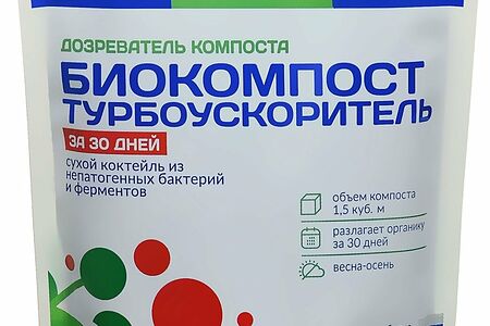 Биокомпост турбоускоритиль за 30 дней. Способствует созреванию компоста от 30 дней. Обогащет компост микро и макро элементами. Уменьшает обьем биомассы. Создан Российскими учеными на основе микроорганизмов постоянно присутствующих в почвах России. Препарат нетоксичен для человека, животных, растений.