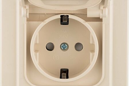 Минск Розетка 1-местная СП с/з с крышкой 16А бежевая с защ. штор. IP44 EKF