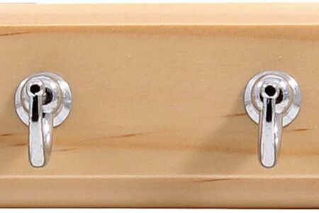 Классическая вешалка состоит из деревянной планки и металлических крючков. Данная модель настенной вешалки с четырьмя крючками, позволяет повесить верхнюю одежду, головные уборы, зонты, ключи. Крючки крепятся к планке винтом с обратной стороны.