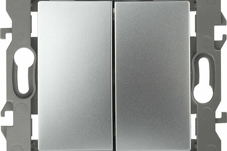 Выключатель 2-клавишный проходной серии Эра 12 скрытой установки механизм цвет алюминий 12-1106-03. Номинальные характеристики 10А 250В . Сделан из поликарбоната, оснащёно автоматическими клеммами для быстрй и надёжной фиксации жил кабеля в механиме. Парные клеммы обеспечивают соединение шлейфом. Монтаж в подрозетник производится и на лапки, и на винты. Рамки приобретаются отдельно. Рамки Эра 12: 1 пост 12-5001-хх, 2 поста 12-5002-хх, 3 поста 12-5003-хх, 4 поста 12-5004-хх, 5 постов 12-5005-хх. Рамки Эра 12 Сатин: 1 пост 12-5101-хх, 2 поста 12-5102-хх, 3 поста 12-5103-хх, 4 поста 12-5104-хх, 5 постов - 12-5105-хх (хх - код цвета: 01-белый, 02-слоновая кость, 03-алюминий, 04-шампань, 05-антрацит, 06-чёрный, 07-ольха(белёный дуб-сатин), 08-вишня, 09-дуб, 10-венге, 11-сосна, 21-жёлтый, 22-оранжевый, 23-красный, 24-охра, 25-бордо, 26-лайм, 27-зелёный, 28-голубой, 29-синий).
