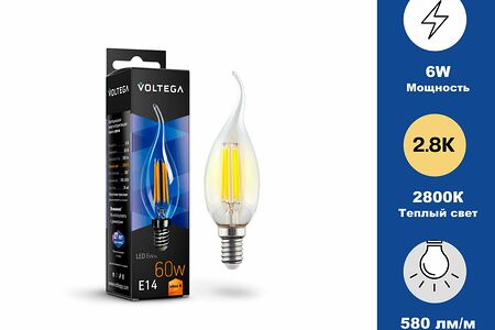 Лампа светодиодная свеча на ветру. Cande wind. Ваттность 6 W. Цоколь Е14. Цветовая температура 2800К
