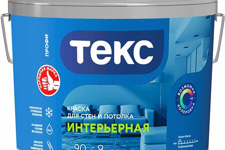 Краска интерьерная Текс Профи белая 9 л предназначена для окрашивания стен и потолков в квартирах, загородных домах, офисах, детских и медицинских учреждениях.