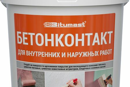 Грунт адгезионный “Бетонконтакт” для внутренних и наружных работ образует шероховатую поверхность. Предназначен для обработки плотных, слабовпитывающих влагу, гладких оснований из монолитного бетона, бетонных блоков и балок, кирпича, гипсокартона, старых штукатурок и поверхностей перед нанесением гипсовых, известково-гипсовых, известково-цементных штукатурок. Также можно наносить на ДСП, OSB.