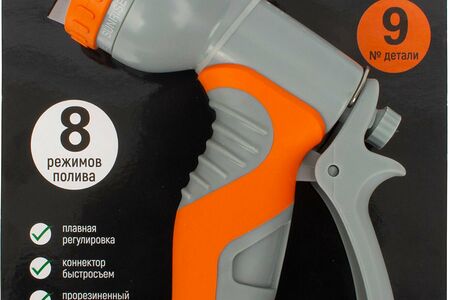 Пистолет-распылитель используется для равномерного орошения и полива газонов, клумб, грядок. Рекомендуемое давление от 2 бар. К шлангу пистолет подключается с помощью быстросъёмного соединения.