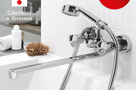 Может ли смеситель прослужить более 10 лет без замены и ремонта? Да, если это продукция легендарного японского бренда TOKITO. Смеситель для ванной с длинным поворотным изливом серии EDO имеет классический дизайн, поэтому он гармонично впишется в любой современный интерьер ванной комнаты. Угол поворота – 90 градусов позволяет максимально освобождать пространство, чтобы сделать водные процедуры максимально комфортными. В комплект входит душевая лейка, которая удобно крепится на горизонтальном держателе. Усовершенствованный аэратор и керамический картридж создают условия для мягкого регулирования потока и бережного расхода воды. Хромовое покрытие увеличивает срок эксплуатации смесителя, защищая его от коррозии.