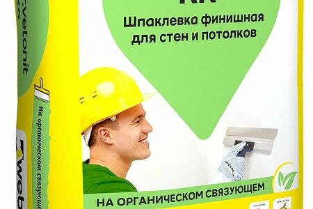 Weber.vetonit KR - белая финишная шпаклевка для стен и потолков на органическом связующем. Наносится на сухое основание перед окраской или оклейкой обоями. Шпаклевка weber.vetonit KR не водостойкая, и она непригодна для выравнивания полов или оснований под облицовку плиткой.