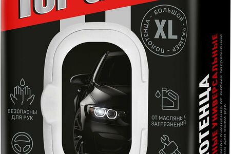 Влажные универсальные полотенца для автомобиля, Top Gear – отличный выбор для любого водителя. Можно использовать для регулярной уборки в салоне автомобиля и после ремонтных работ, очищают масляные загрязнения и безопасны для рук. Большой размер. Количество салфеток: 60 шт.