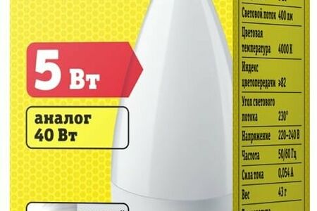 Лампа светодиодная свеча E27 5 Вт 4000 К холодный свет доставка