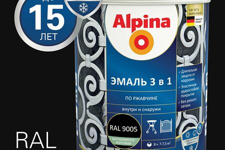Эмаль по ржавчине Alpina 3В1 черная 0,75 л доставка