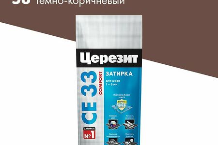 Затирка для швов Церезит СЕ 33 Comfort на цементной основе с минеральными заполнителями, полимерными добавками и темно-коричневым пигментом легко замешивается и наносится, защищает межплиточное пространство от влаги, пыли, грибковых поражений, обеспечивает привлекательный вид облицованной поверхности и продлевает срок ее службы.