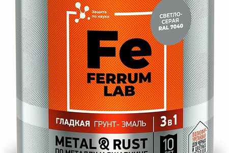 Грунт-эмаль FERRUM LAB по ржавчине 3 в 1 светло-серая глянцевая, банка 0,75 л доставка
