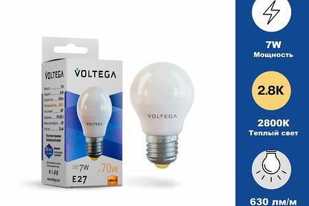 Лампа светодиодная Шар.Globe Ваттность 7W Цоколь Е27 Цветовая температура 2800К