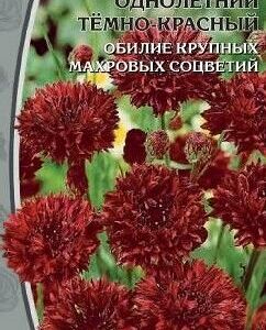 Василёк тёмно-красный 0,1 гр - Неприхотливый однолетник с декоративной листвой и очаровательными тёмно-красными цветками высотой 70-80см. Цветки махровые, крупные, диаметром 4-5см. Листья ланцетные, серовато-зеленые. Растение холодоустойчивое, светолюбивое. Цветет обильно с июля до сентября. Используют для оформления клумб, рабаток, мавританского газона, в группах, а также срезки.