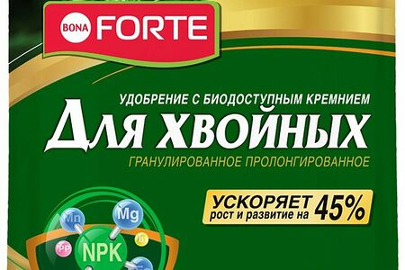 Удобрение BONA FORTE предназначено для подкормки можжевельника, ели, туи, сосны, лиственницы, кедра и других хвойных растений.