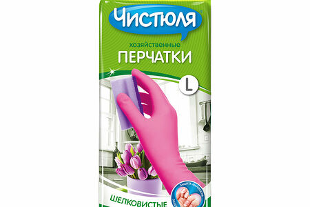 Хорошая плотность и качественное напыление защитят ваши руки и маникюр при любых домашних работах от воды, моющих средств, красящих и сильно пахнущих продуктов. Не слипаются при хранении: внутреннее напыление из 100 % хлопка, имеют очень приятную на ощупь шелковистую фактуру. Перчатки безопасны для работы с пищевыми продуктами.СОВЕТ: в перчатках ЧИСТЮЛЯ можно чистить рыбу, лук, чеснок (чтобы руки не пропитались неприятным запахом), перебирать грибы и ягоды (чтобы защитить руки от окрашивания), натирать продукты на терке (чтобы не поцарапать маникюр).Размер: L