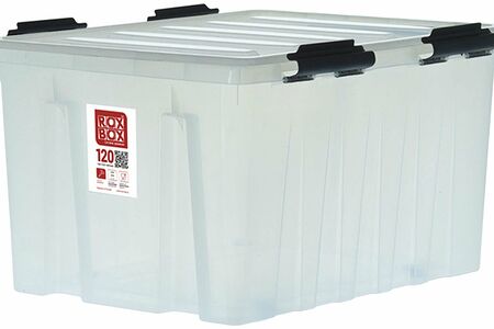 Прозрачный контейнер для хранения ROXBOX объемом 120 л оснащен роликами для удобства перемещения и защелками для плотного прилегания крышки. Вместительный короб из полипропилена помогает навести порядок в спальне, детской, гардеробной, гараже, мастерской, на даче, в других жилых, подсобных и производственных помещениях.
