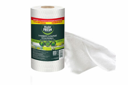 Универсальные полотенца Master FRESH отлично впитывают влагу, жир, масла, за счет повышенного содержания вискозы - 70%. Чистят и полируют, не оставляя ворсинок, легко отрываются благодаря качественной перфорации. Высокопрочные, могут использоваться многократно, обладают антистатическими свойствами.Материал спанлейс «СОТЫ» прочный на разрыв, имеет повышенную впитываемость в сравнении с обычным гладким материалом спанлейс, а так же обладает приятными тактильными свойствами что немало важно при уходе за детьми.Полотенца в рулоне Master FRESH - это отличные помощники для любой хозяйки буквально везде: для дома, дачи, автомобиля, в уходе за детьми, для личной гигиены.