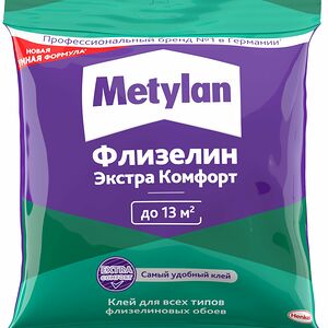 Клей Метилан Флизелин Экстра Комфорт предназначен для флизелиновых обоев. Его главным преимуществом является новая умная формула для более комфортного процесса поклейки обоев. Клей легко развести, комки не появятся даже при добавлении воды в клей (при интенсивном перемешивании). Продукт обладает высокой начальной силой схватывания, а при неровном наклеивании обоев в течение 15 минут их можно легко корректировать. Стоит обратить внимание на новый дизайн пачки, который так же привлечёт к себе внимание потребителей.