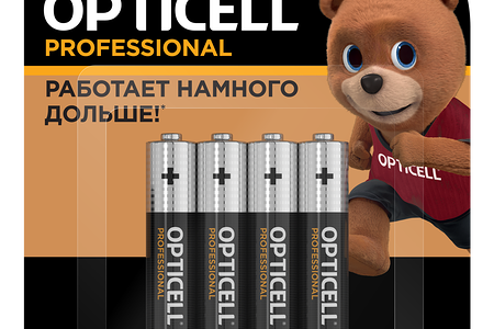 Многоцелевые батарейки улучшенной формулы Opticell Professional работают дольше, намного дольше* (*по сравнению с солевой батарейкой типа ААА. Результаты могут варьироваться в зависимости от устройства и интенсивности использования).