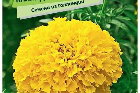 Одно из самых распространенных неприхотливых однолетних цветочных растений. Соцветия- крупные корзинки 6-10 см в диаметре, махровые, лимонно-желтого цвета на прочных цветоносах.