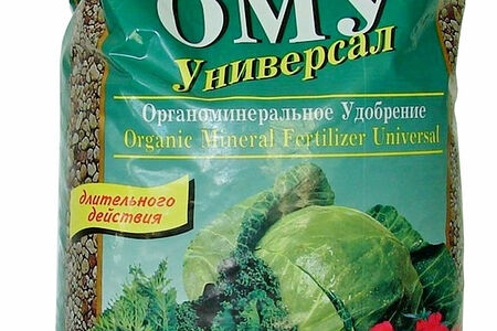 Органоминеральное удобрение "Универсал". Состав: Азот 7 процентов, Фосфор 7 процентов, Калий 8 процентов, Магний 1.5 процента, Микроэлементы в оптимальном соотношении, гуминовые соединения 2.6 процента. Обеспечивает полное усвоение растениями питательных веществ, высокий урожай с отличными вкусовыми качествами, низкий уровень нитратов в плодах и овощах, морозоустойчивость и сопротивляемость растений болезням, увеличение содержания гумуса в почве, рыхлость и водопроницаемость почвы. Основное внесение осуществляется ранней весной. Под перекопку почвы вносят 100 грамм удобрения на 1 кв. м окультуренных и 150 грамм на 1 кв. м неокультуренных почв. Под плодовые деревья вносят 90 грамм на 1 кв. м, при посадке рассады и картофеля 20 грамм удобрения тщательно перемешивают с землей и вносят в лунку.