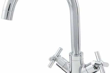 Двухвентильный смеситель для кухни Water Line 23401 с поворотным изливом изготовлен из латуни с хромированным покрытием. Высокий изогнутый излив и крестообразные вентили создают интересное сочетание геометрических форм, а сверкающее покрытие подчеркивает фактуру мойки и кухонного гарнитура.
