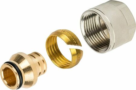 Фитинги компрессионные STOUT предназначены для присоединения труб STOUT к штуцерам оборудования STOUT с наружной резьбой 1/2”, 3/4” и соответствующей геометрией.