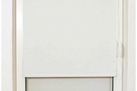 Штора выполнена в белом цвете из качественного материала. Днем штора рассеивает прямой солнечный свет, а ночью защищает от постороннего взгляда и уличного освещения. Полотно не деформируется, не тускнеет, не собирает пыль. Имеется механизм управления в виде пластиковой цепочки.