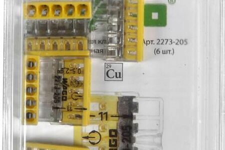 Клеммы Wago оснащены самозажимным механизмом, который позволяет быстро соединить между собой пять одножильных или многожильных проводов. Данная модель подходит для монтажа алюминиевых или медных кабелей. Жила провода вставляется в клемму и самозажимной контакт прочно фиксирует соединение. Изделия выполнены из качественного материала с хорошими техническими характеристиками и отличной износостойкостью. Клемма соединительная облегчает и ускоряет монтаж при устройстве электропроводки, подключении фурнитуры и осветительных приборов. Предназначена для соединения проводов и кабельных жил из алюминия и меди.