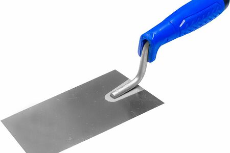 Инструмент используется для размешивания, отмеривания и нанесения строительных гипсовых или цементных растворов на различные поверхности. Рабочее полотно трапецевидной формы из нержавеющей стали.
