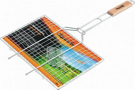 Хромированная решетка-гриль Sparta 69567 размером 220 х 340 мм будет полезна для любителей блюд, приготовленных на углях. С ее помощью можно качественно и равномерно пожарить мясо, овощи, птицу и рыбу, поэтому они получаются вкусными и сочными. Преимущества: Долговечность и надежность решетки достигается за счет качественного материала изготовления — жаропрочной пищевой стали с хромовым покрытием. Рукоятка из поливинилхлорида (PVC) не скользит в руках, почти не нагревается при контакте с горячими поверхностями и не утяжеляет конструкцию решетки. Решетка имеет увеличенные опорные стержни, благодаря чему она надежно фиксируется на мангале, а рабочая поверхность при этом используется полностью.