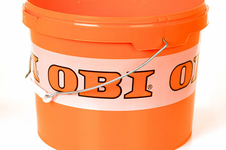 Ведро с логотипом OBI представляет собой емкость из пластика объемом 10 л.