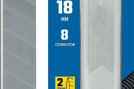 Максимально долговечные лезвия. Обладают повышенным ресурсом, обеспечивают длительную и качественную работу.- Ширина лезвия: 18 мм- Материал лезвия: У8А - Тип лезвия: Сегментированное - Тип заточки лезвия: двугранная - Количество лезвий в упаковке: 10 шт- Количество сегментов: 8