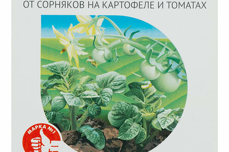 Избирательный гербицид для томатов и картофеля. Создает в почве экран против прорастания сорняков, при этом не повреждает картофель и томаты. Уничтожает амброзию, горцы, звездчатку, марь, мятлик, осот, ромашку, щирицу и множество других сорных растений. Защищает посадки на протяжении 1-2 месяцев. Выпускается в удобной жидкой форме.