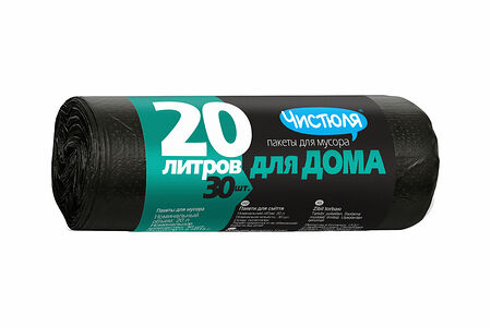 Пакеты для мусора Чистюля Для дома 20 л, черный, 30 шт доставка