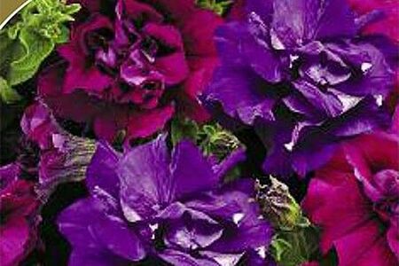 Удивительная смесь петуний с цветками сине-фиолетового и бордового цвета. Кусты достигают 25-35 см в высоту, около 30 см в диаметре. Покрыты аккуратной листвой и махровыми цветками, каждый из которых около 5-6 см в диаметре. Цветение начинается в июне и продолжается вплоть до сентября. Сорт подходит для универсального использования.