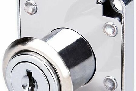 Надежный врезной замок для ящика или фасада из ДСП. Для надежной фиксации есть 4 крепежных отверстия. Простое и эффективное решение для офисных тумб, комодов или шкафов.