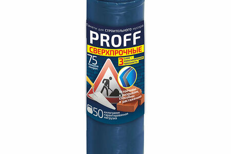 Пакеты GRIFON Стройка PROFF изготовлены из трёхслойного полиэтилена – это дает повышенную прочность и высокую грузоподъемность. Пакет способен выдерживать нагрузку в 70 килограммов! Толщина 75 микрон, 120 литров.