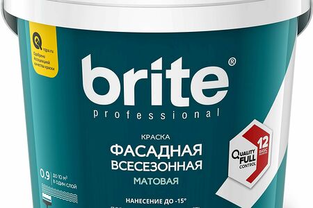 Акриловая краска для профессионального использования Brite Professional Quality Full Control фасадная всесезонная матовая. Адаптирована для климатических условий регионов России, обладает повышенной устойчивостью к атмосферным воздействиям и перепадам температур, в том числе в условиях северных широт.