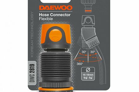 Коннектор гибкий для шланга 15-19 мм (5/8” - 3/4”) Daewoo DWC 2819 изготовлен из ударопрочного ABS пластика для долгого срока службы. Изделие позволяет подсоединять поливочный шланг к центральной системе водоснабжения, легко создать герметичное соединение.